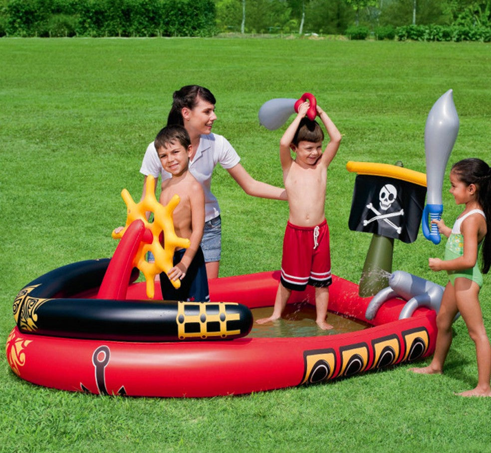 $49! PIRATE SHIP Inflatable Play Center with Water Slide, Inflatable Pool